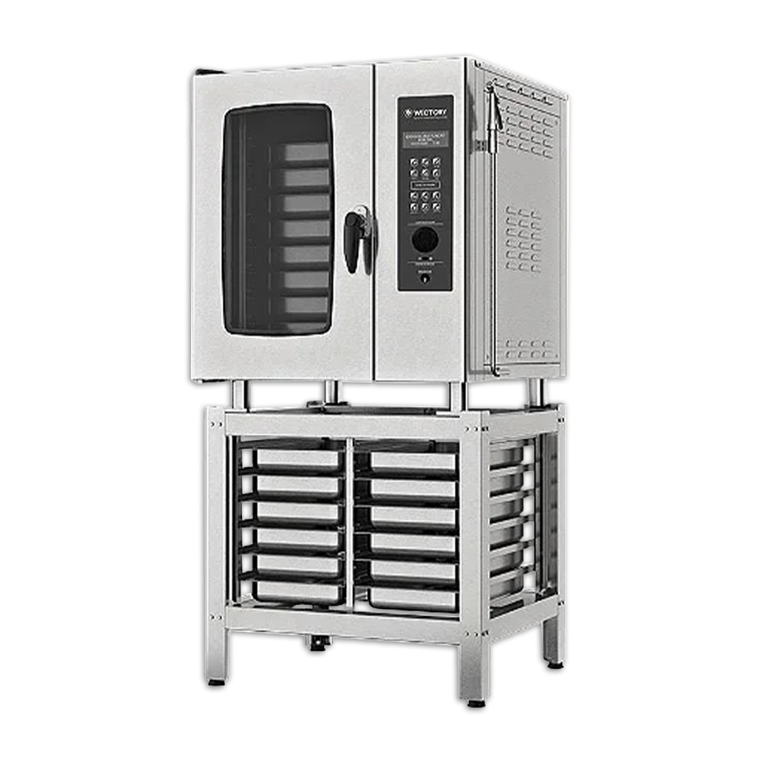 Energia: 40% de redução de gás ou eletricidade. Além da diminuição de vários equipamentos que por si só proporcionam uma grande economia. O forno combinado trabalha com termostato, garantindo o melhor aproveitamento de calor da câmara;