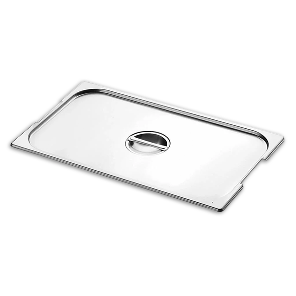 Tampa para cuba gastronômica, fabricada em aço inox, com encaixe perfeito para cubas com alça no padrão GN 1/1, usadas em rechauds, buffets self service, carrinhos térmicos, restaurantes, hotéis e refeitórios.